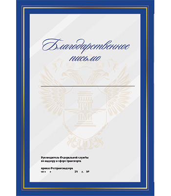 Удостоверение к медали «20 лет Федеральному агентству ж/д транспорта»