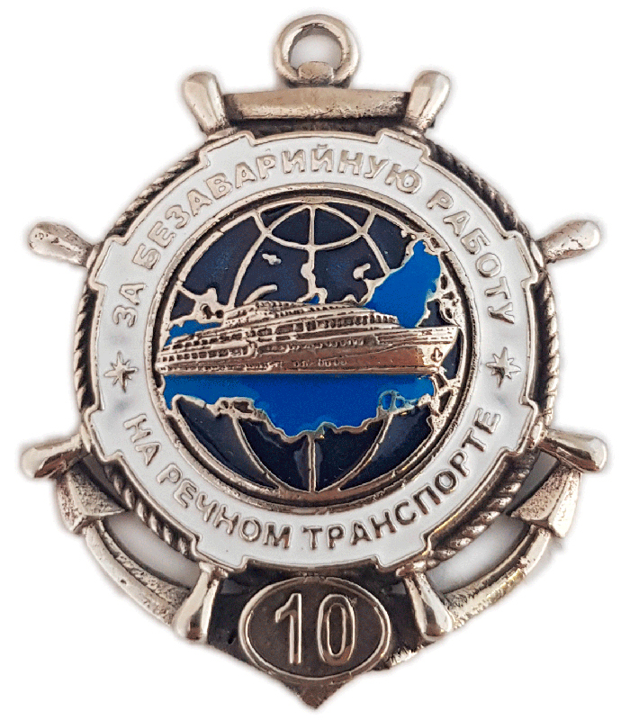 Нагрудный знак «За безаварийную работу на речном транспорте 10»